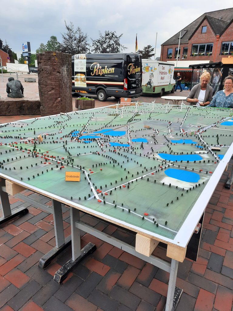Präsentation des Landschaftsmodells auf dem Bockhorner Wochenmarkt im Mai 2024