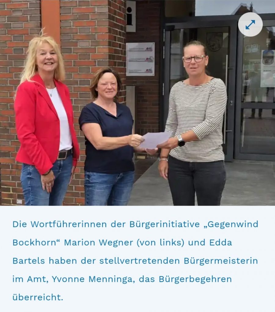 Einreichung eines Bürgerbegehrens zum Stop der Raumüberfrachtung durch zusätzliche Windenergie bei der Gemeindeverwaltung Bockhorn Ende Juni 2025
